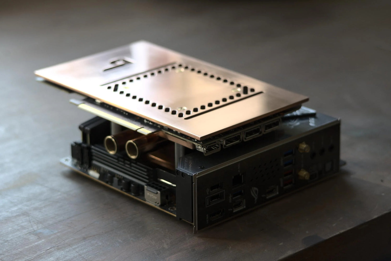 A full copper water block that cools both your GPU and CPU, ideal for small form factor builds.