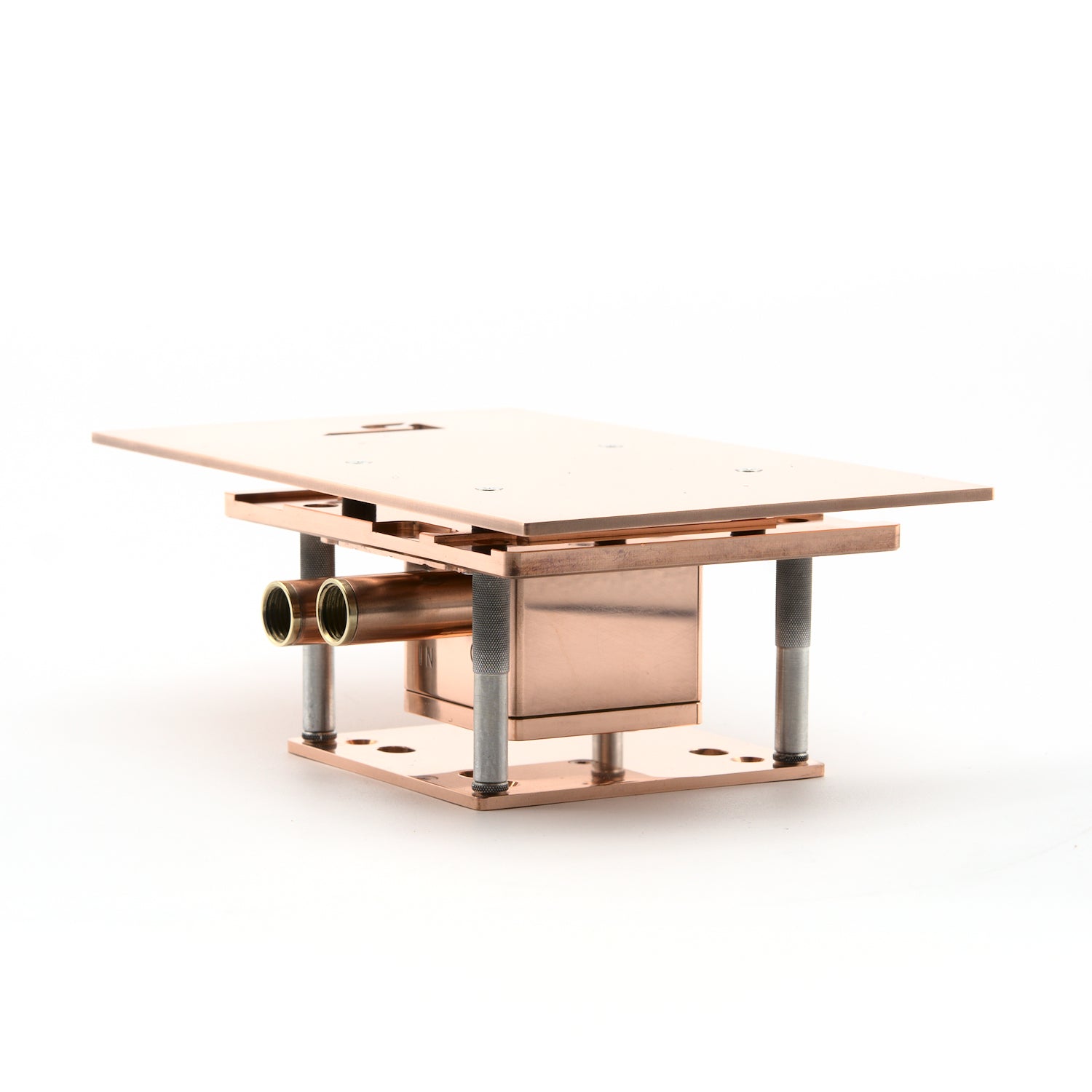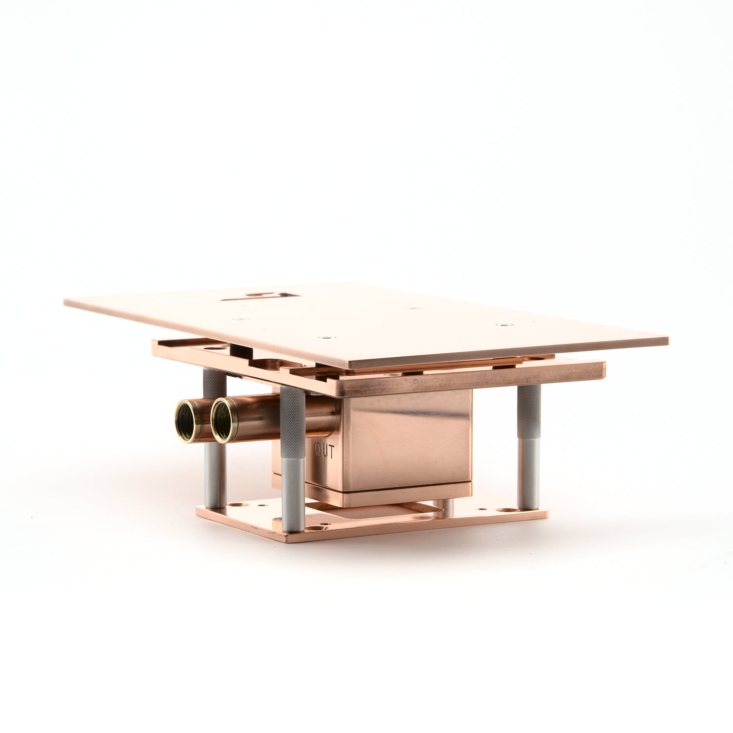The Billet Labs MonoBlock is machined entirely from pure C101 copper, so even the centre of it is constantly being actively cooled by flowing water. We've even machined cooling fins and rough surfaces into parts that are nowhere near the CPU and GPU, just to create turbulence to pull as much heat out as we possibly can. The huge thermal mass also wicks additional heat away from the CPU/GPU during temperature spikes, something that is only possible with this block layout. The MonoBlock has the potential to cool your PC like nothing else on the market.